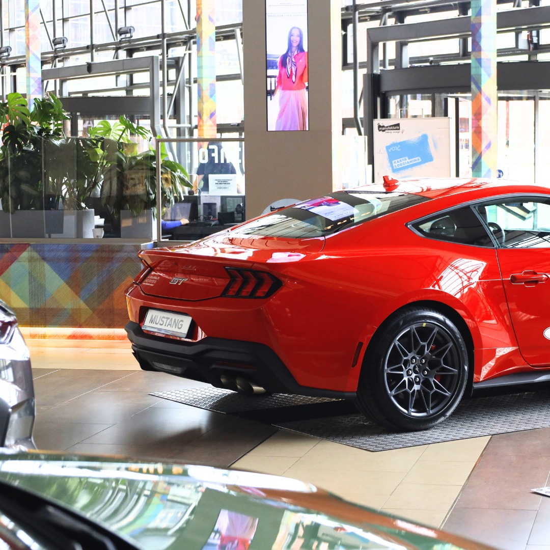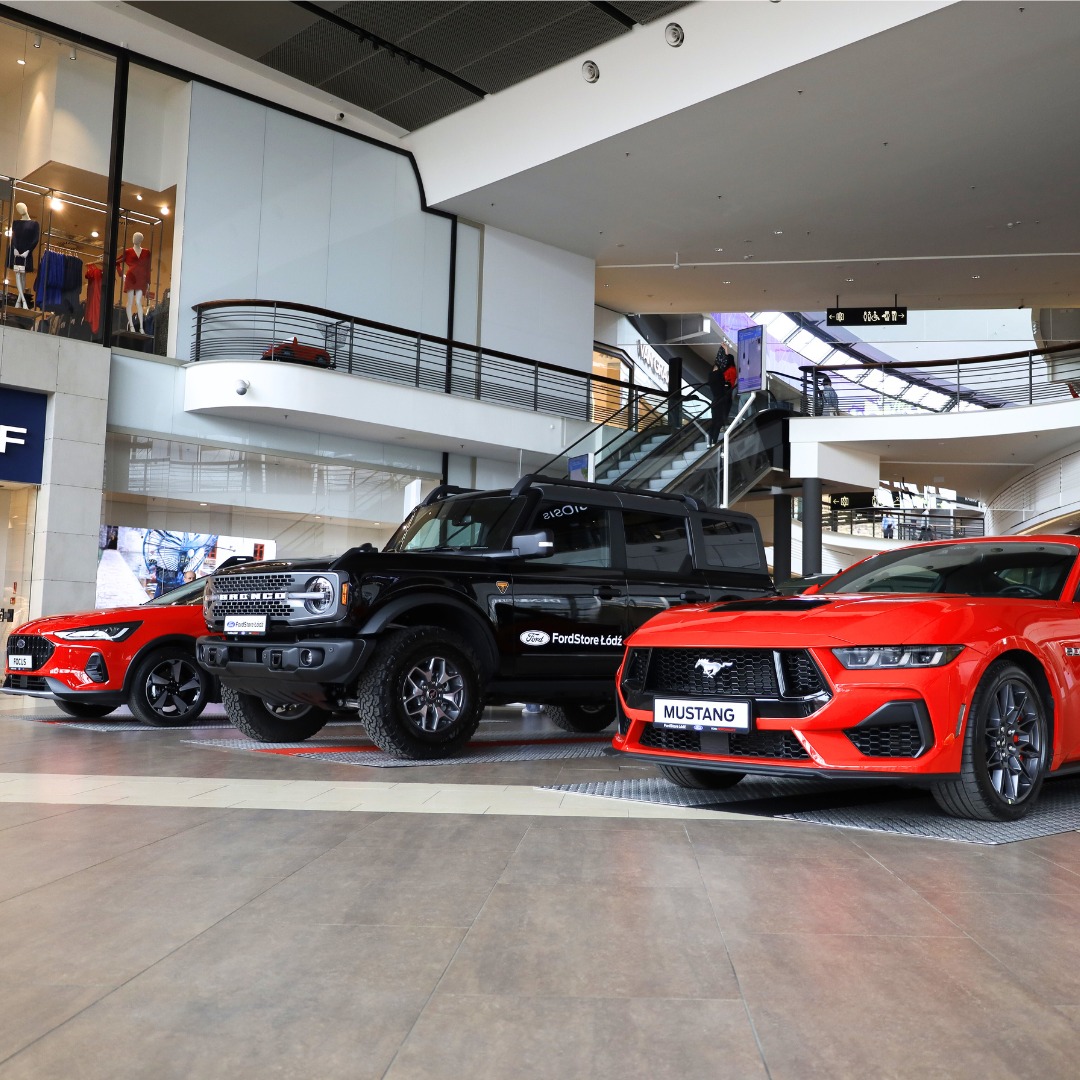 Od 9 kwietnia w Łódzkiej Manufakturze można obejrzeć najnowsze modele Forda. W centrum handlowym zaparkowały Transit Custom, Transit Courier, Focus, Bronco oraz właśnie 7 generacje Mustanga w pięknej czerwieni.