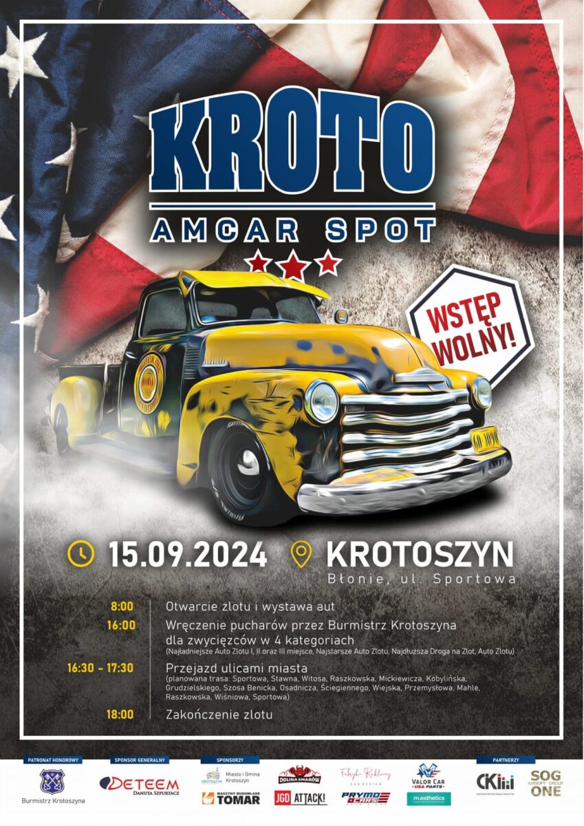 Tak jest drodzy zlotowicze i spotowicze. Pozostał jedynie miesiąc do największego w Polsce spotu aut Amcarowych, czyli VII Kroto Amcar Spot. 15 września 2024 to tegoroczna data zamknięcia sezonu spotkań miłośników aut amerykańskich.