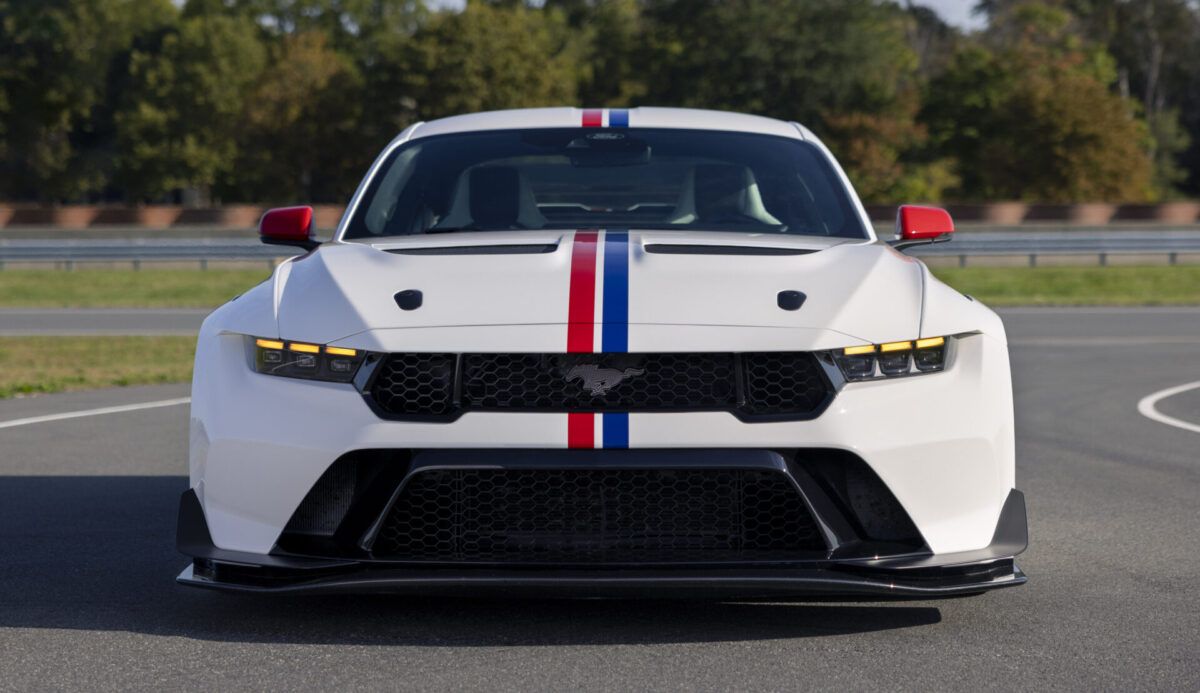 Mustang GTD w wersji Spirit of America nie mógł nie pojawić się w jakimś niezwykłym malowaniu. To już pewien standard w Fordzie, że przywracane są historyczne malowania lub modyfikowane i przywoływane na nowo. Tym razem zdecydowano się na wykorzystanie w malowaniu logo Mustanga z 1964 roku. Tribar to emblemat, który przedstawia konia na tle 3 pasów, czerwonym, białym i niebieskim.