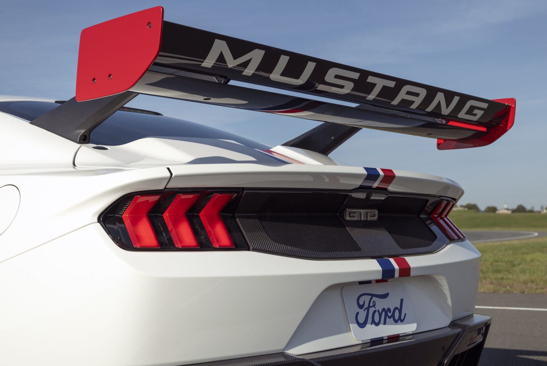 Mustang GTD w wersji Spirit of America nie mógł nie pojawić się w jakimś niezwykłym malowaniu. To już pewien standard w Fordzie, że przywracane są historyczne malowania lub modyfikowane i przywoływane na nowo. Tym razem zdecydowano się na wykorzystanie w malowaniu logo Mustanga z 1964 roku. Tribar to emblemat, który przedstawia konia na tle 3 pasów, czerwonym, białym i niebieskim.