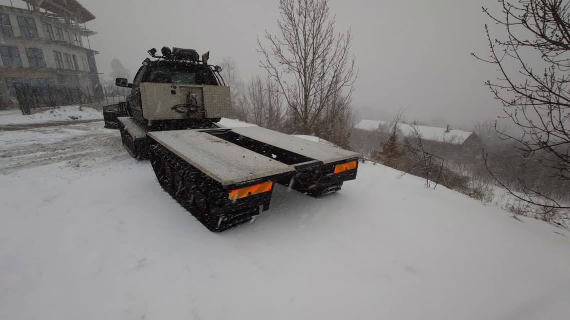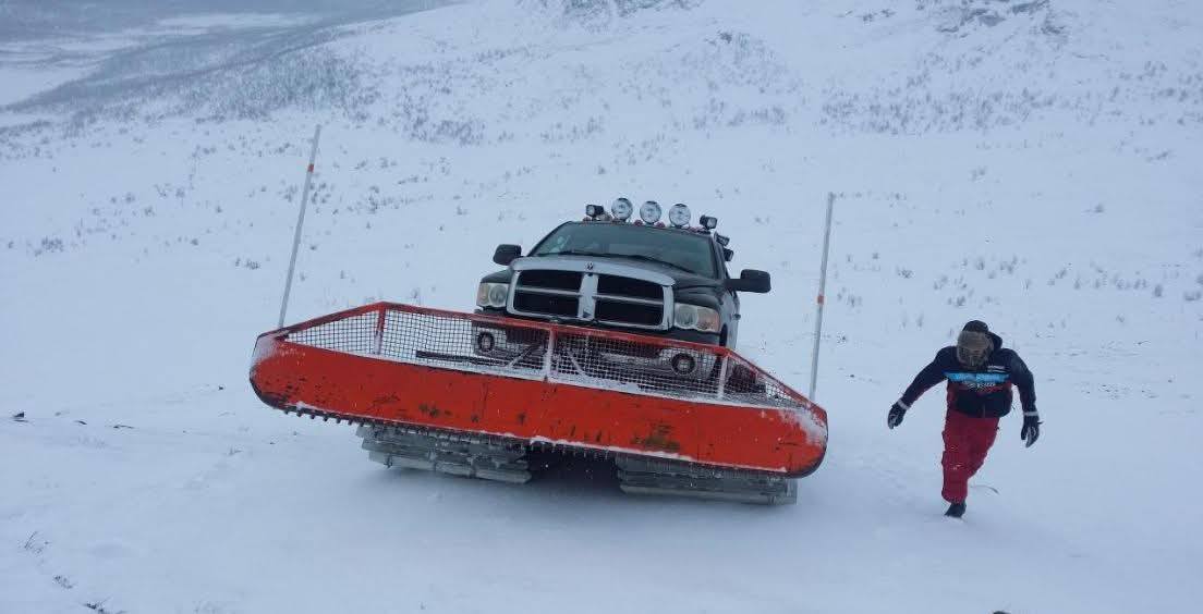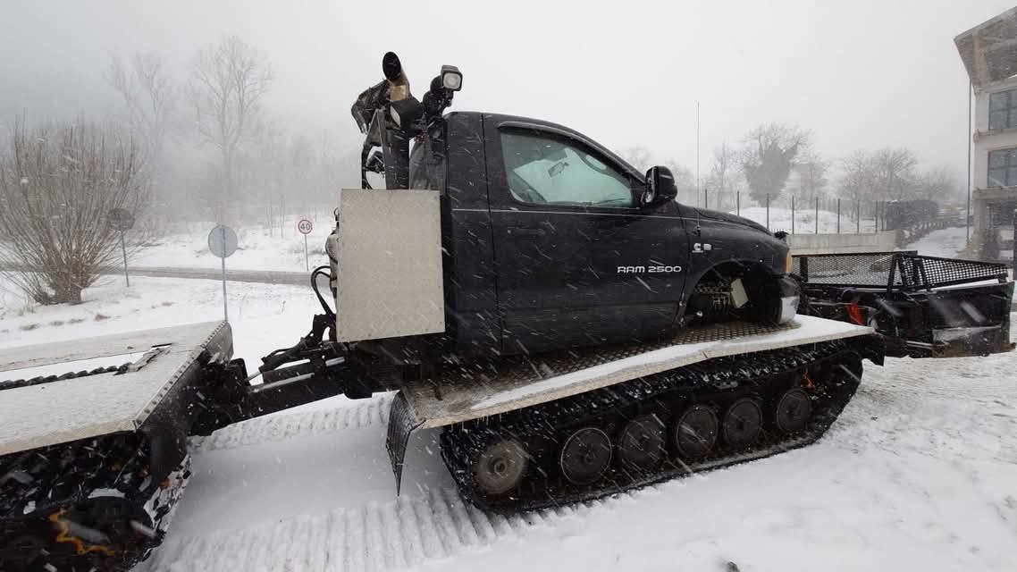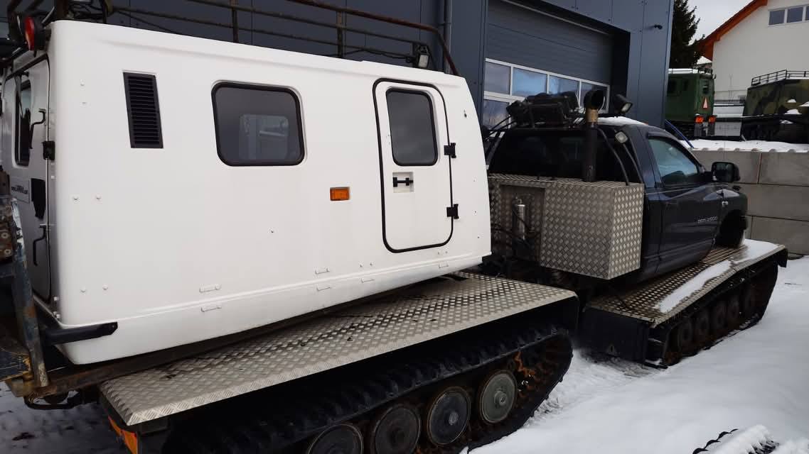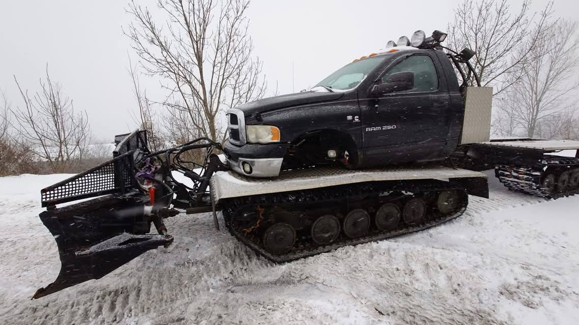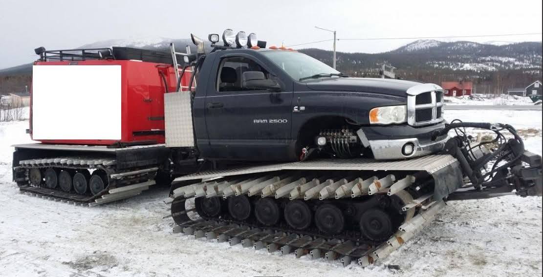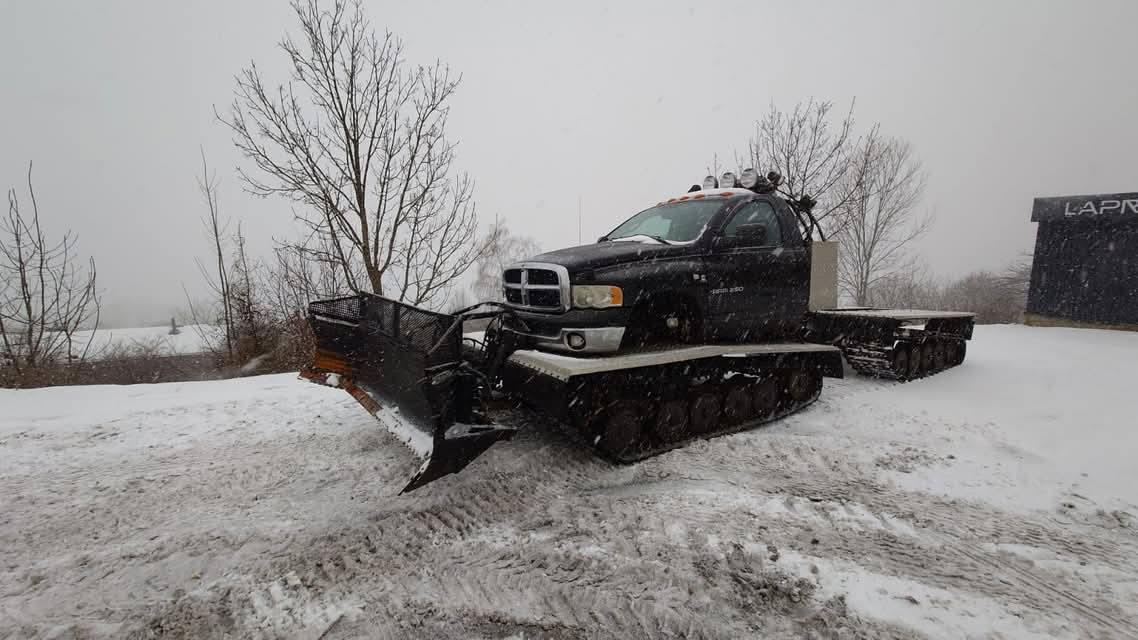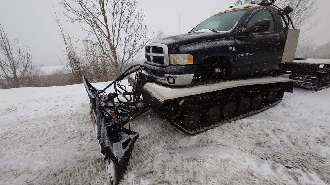 Dziś na grupie Dodge RAM Poland pojawiło się ogłoszenie, koło którego ciężko przejść obojętnie. Pewien zapaleniec połączył podwozie Hagglund Bv206 z Dodge Ram 2500. Dzięki temu powstał wielki ratrakowy pług śnieżny.