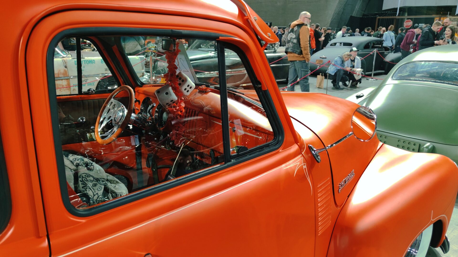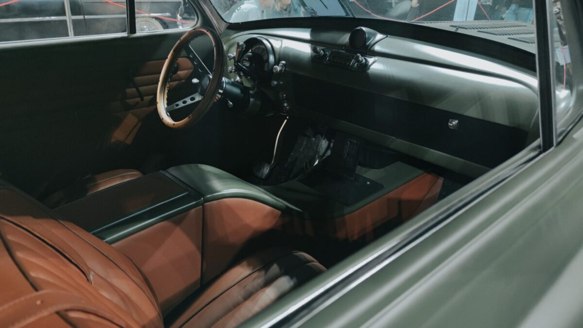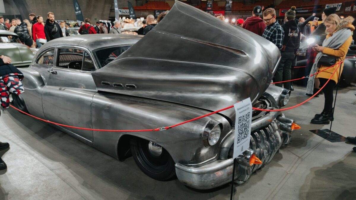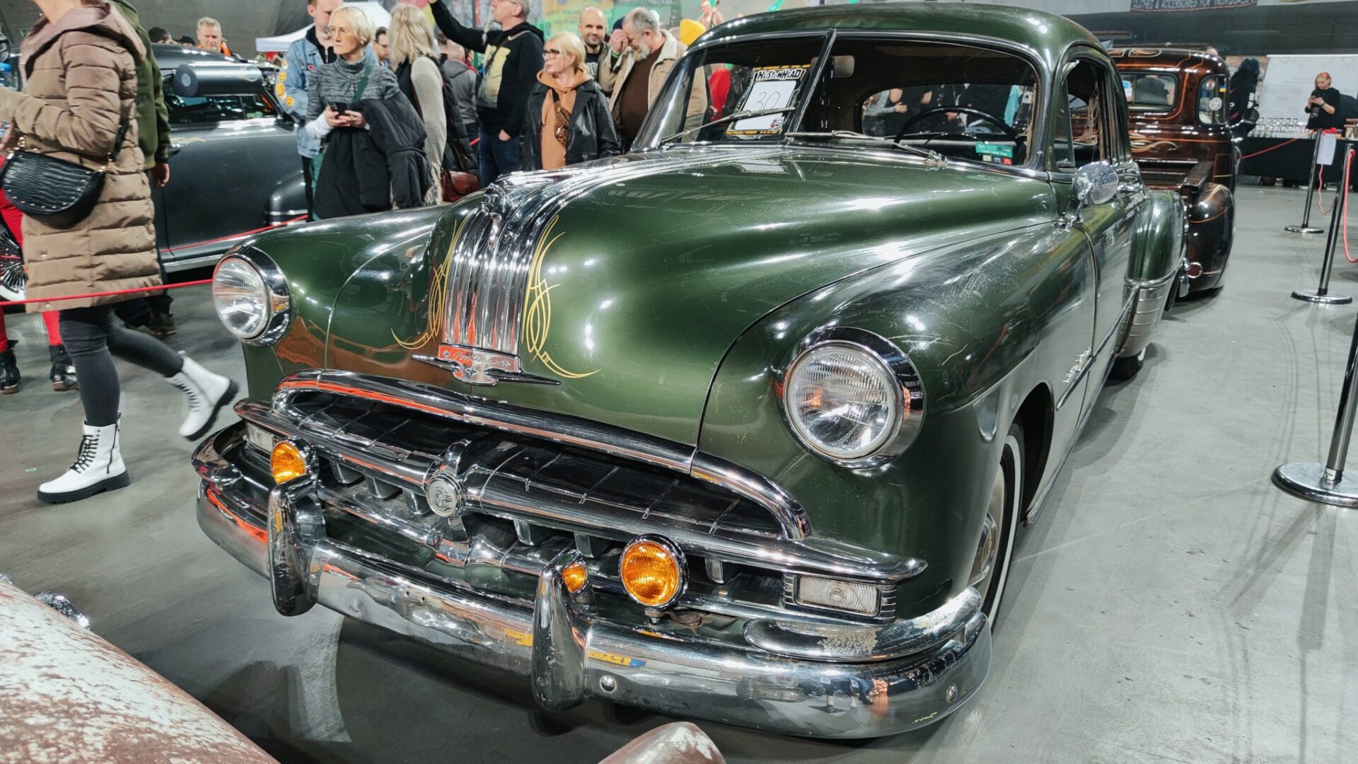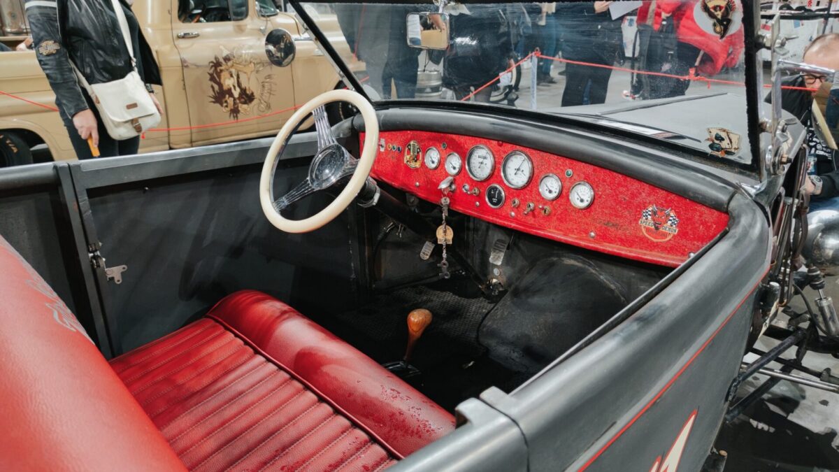 Odpowiedź nie jest taka prosta, tak jak proste nie jest rozpoznanie aut które oglądamy na wystawie. Prócz standardowego problemu, jak to że w latach 50′ i 60′ co rok wypuszczano „nowe” auto, czyli zmieniano wygląd nie zmieniając nazwy lub zmieniano nazwę prawie nie zmieniając wyglądu dochodzi fakt że pewna część aut to prawdziwe Customy, jak te od Speed Shop and Kustoms . Jak choćby piękny Buick Sedanette którego wnętrze jest jedyne w swoim rodzaju.