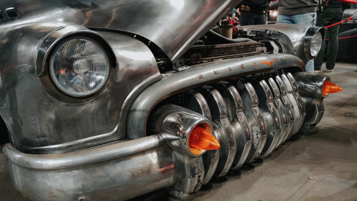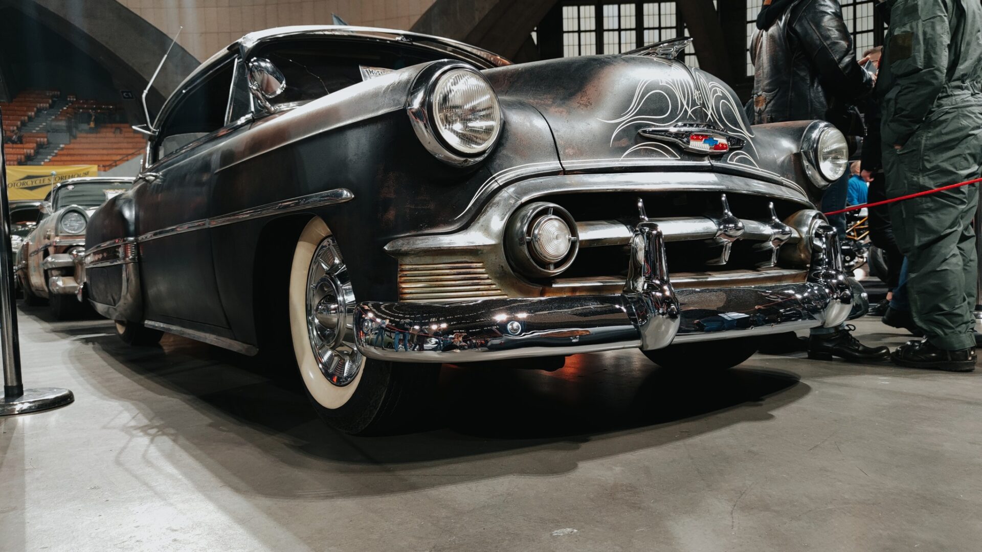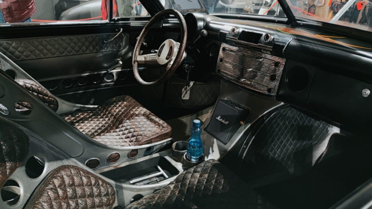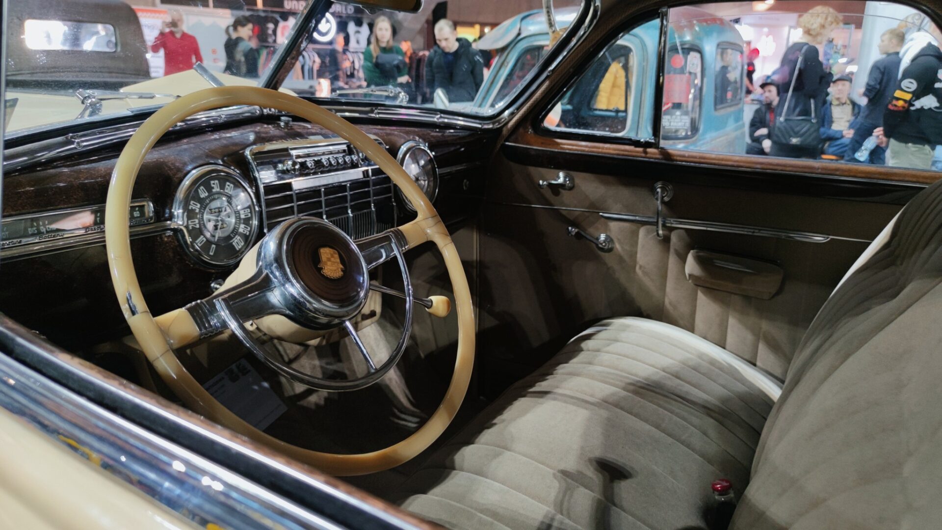 Odpowiedź nie jest taka prosta, tak jak proste nie jest rozpoznanie aut które oglądamy na wystawie. Prócz standardowego problemu, jak to że w latach 50′ i 60′ co rok wypuszczano „nowe” auto, czyli zmieniano wygląd nie zmieniając nazwy lub zmieniano nazwę prawie nie zmieniając wyglądu dochodzi fakt że pewna część aut to prawdziwe Customy, jak te od Speed Shop and Kustoms . Jak choćby piękny Buick Sedanette którego wnętrze jest jedyne w swoim rodzaju.