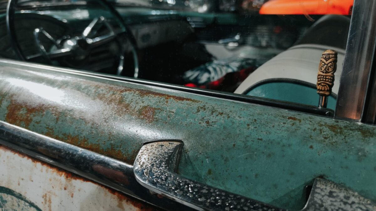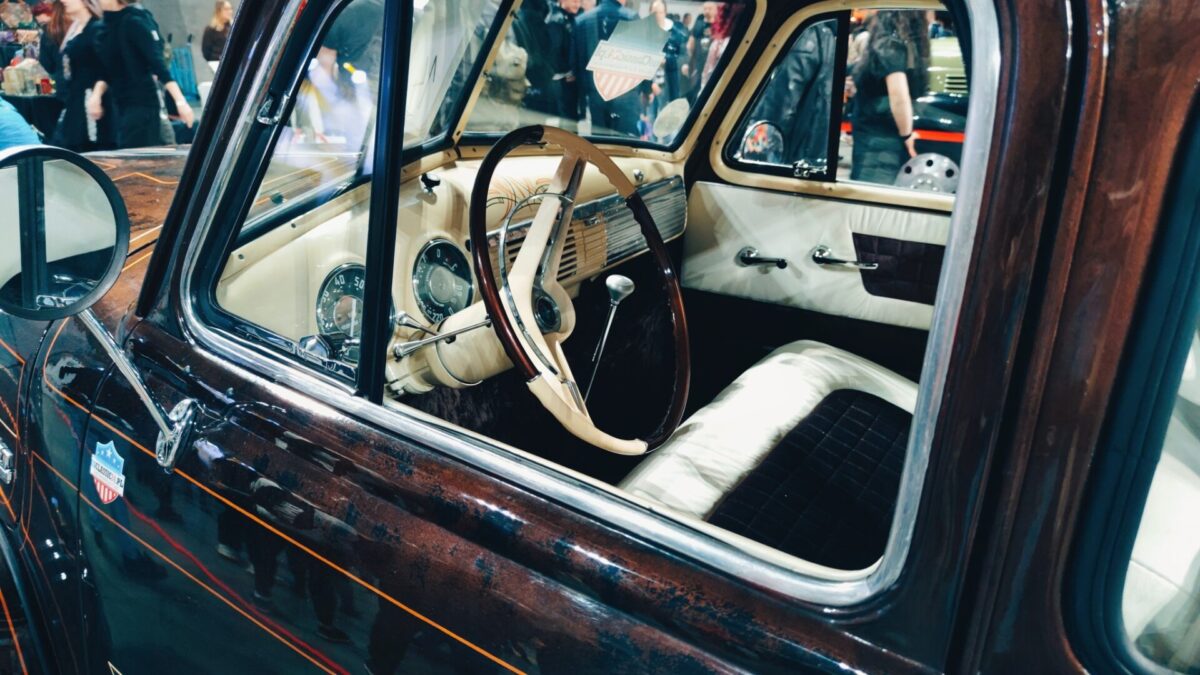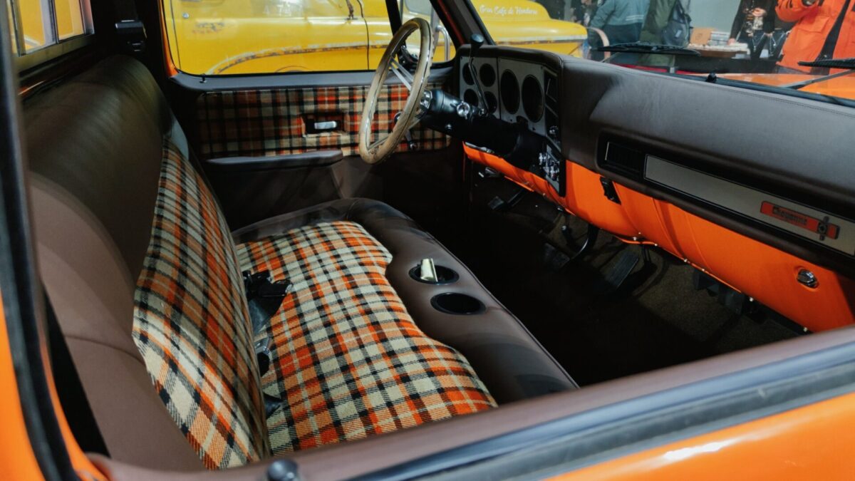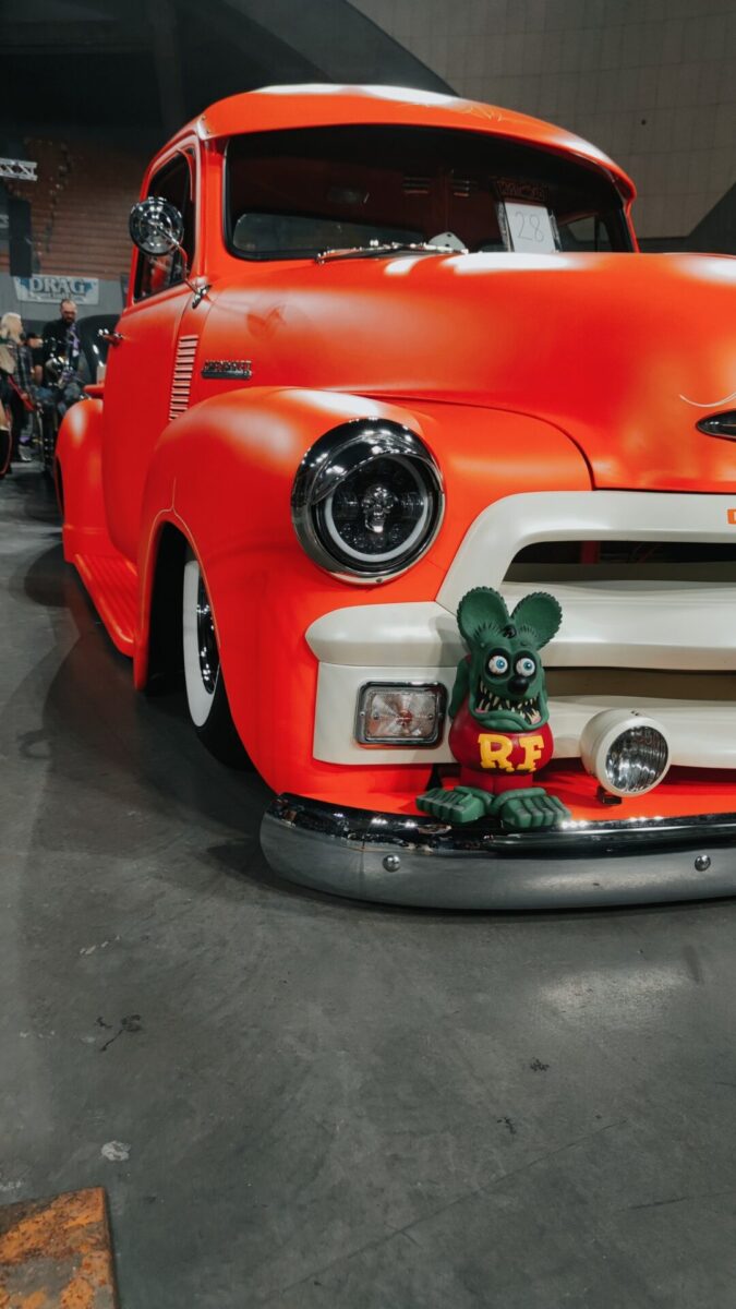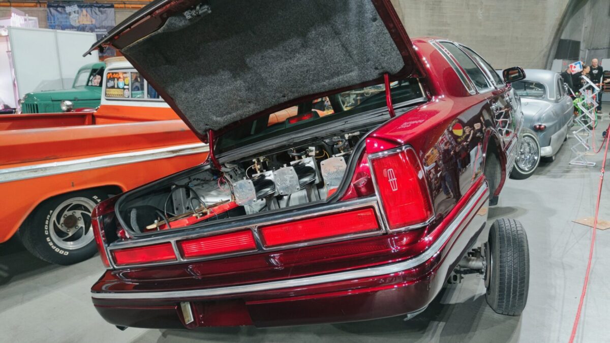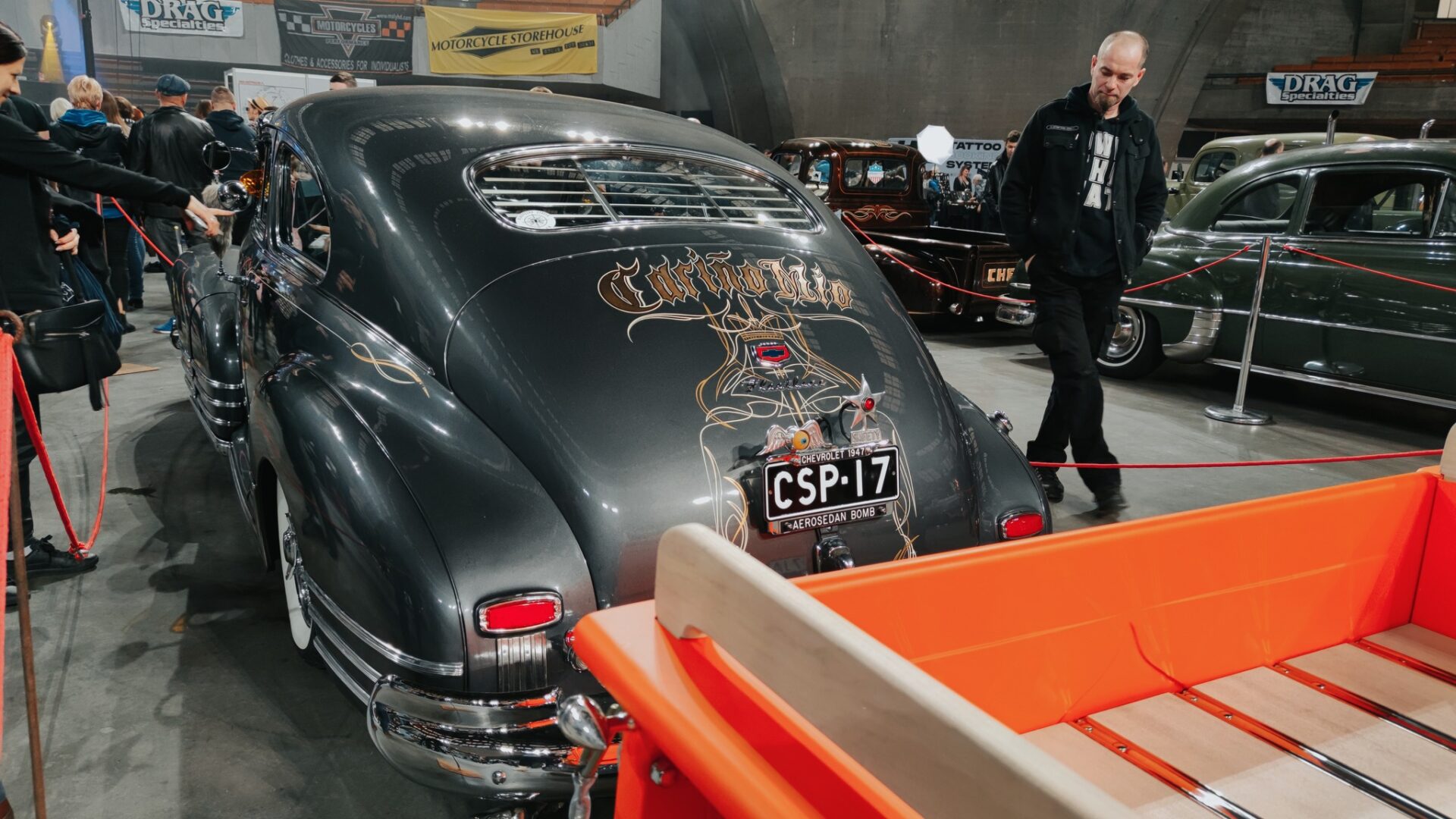Odpowiedź nie jest taka prosta, tak jak proste nie jest rozpoznanie aut które oglądamy na wystawie. Prócz standardowego problemu, jak to że w latach 50′ i 60′ co rok wypuszczano „nowe” auto, czyli zmieniano wygląd nie zmieniając nazwy lub zmieniano nazwę prawie nie zmieniając wyglądu dochodzi fakt że pewna część aut to prawdziwe Customy, jak te od Speed Shop and Kustoms . Jak choćby piękny Buick Sedanette którego wnętrze jest jedyne w swoim rodzaju.