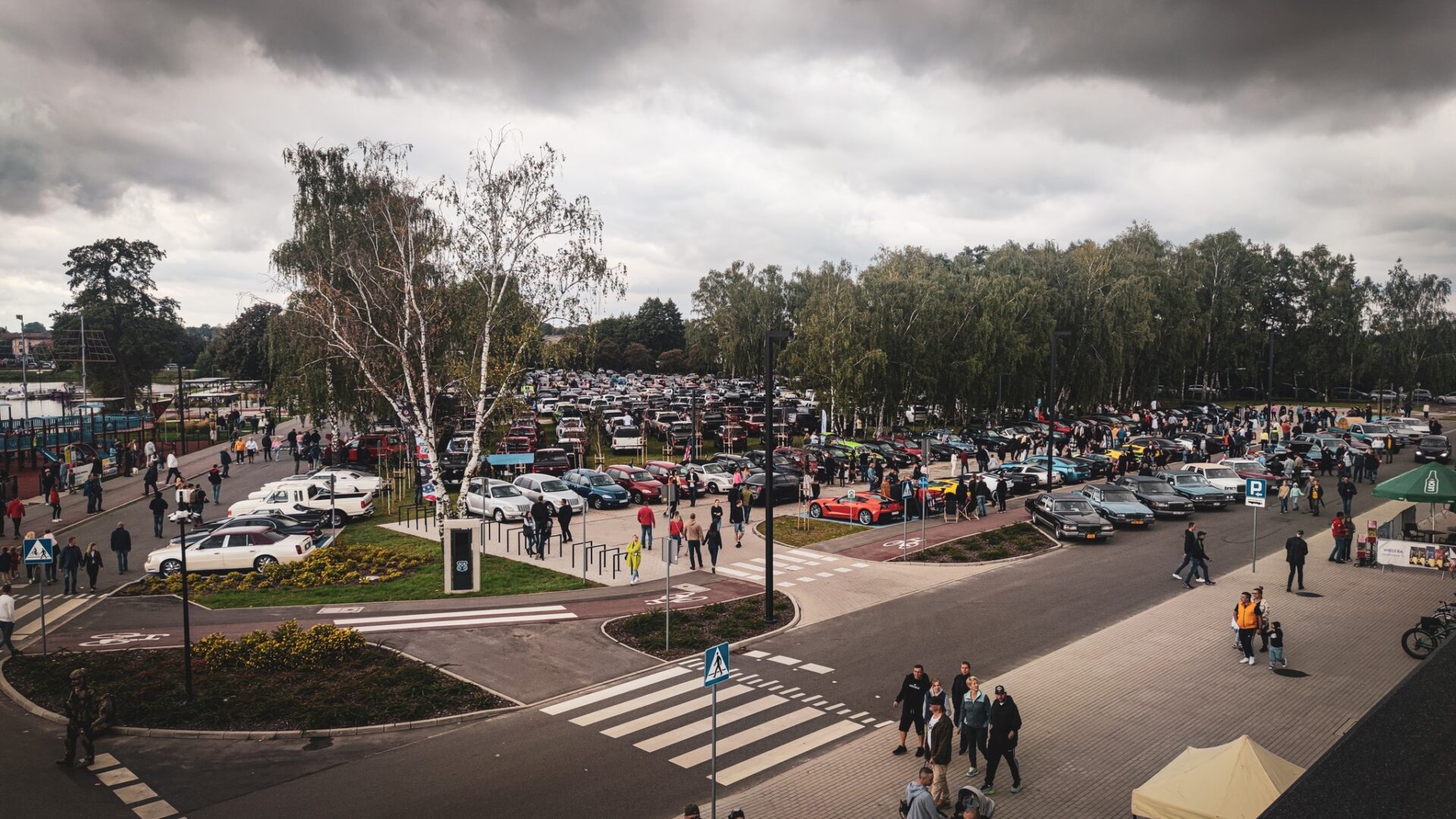 Teraz wiemy, że wszystkie obawy, szlag trafił. Błonia okazały się miejscem z gigantycznym zapleczem pod każdym względem. Na Kroto przyjechało 489 aut, a spokojnie zmieści się 700, „trawa” na której stały auta to żadna sztuczna rewitalizowana użyźniania zieleń a normalna twarda gleba z zielenią, po której wszystkie auta, bez względu na napęd i moc wjeżdżały, nie zakopując się, nie unosząc ziemi, nie niszcząc flory. Zamiast mnóstwa restauracji mieliśmy kilka foodtruckow, „bar stadionowy” i miejsca z kawą i herbatą. Może trzeba było chwilę poczekać, ale dały radę. Przy głównej drodze prowadzącej na zlot były miejsca odpoczynku dla dorosłych, park zabaw dla dzieci, skatepark, boiska do siatkówki, koszykówki. A na tle zlotu piękny obiekt, który jest trybuną stadionu w Krotoszynie, miejsce, gdzie można było wejść i podziwiać spot z góry. WC i łazienek nie muszę wspominać, bo w samym męskim zmieściłyby się 2 drużyny piłkarskie naraz, więc o tłok było ciężko.