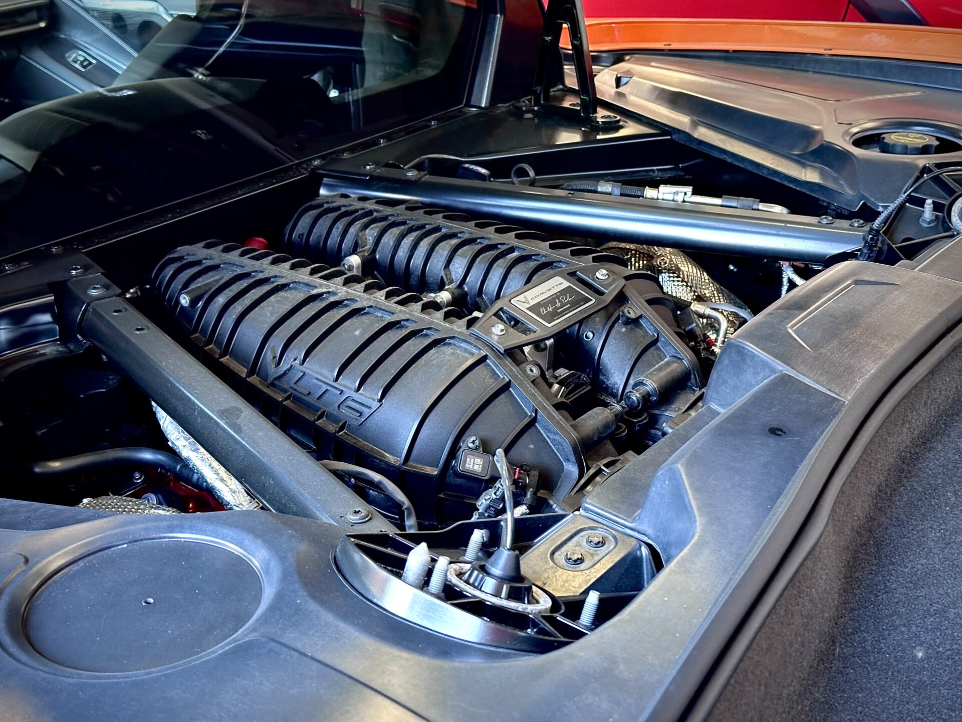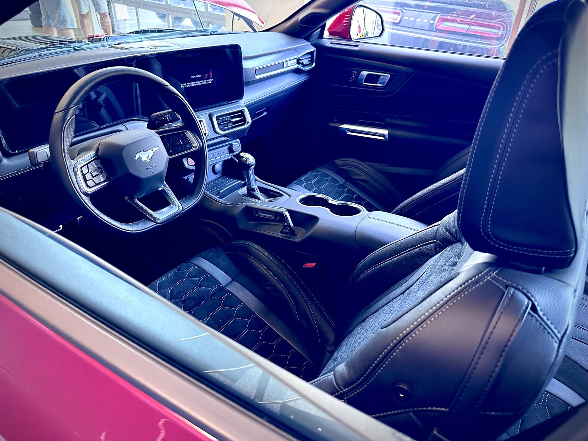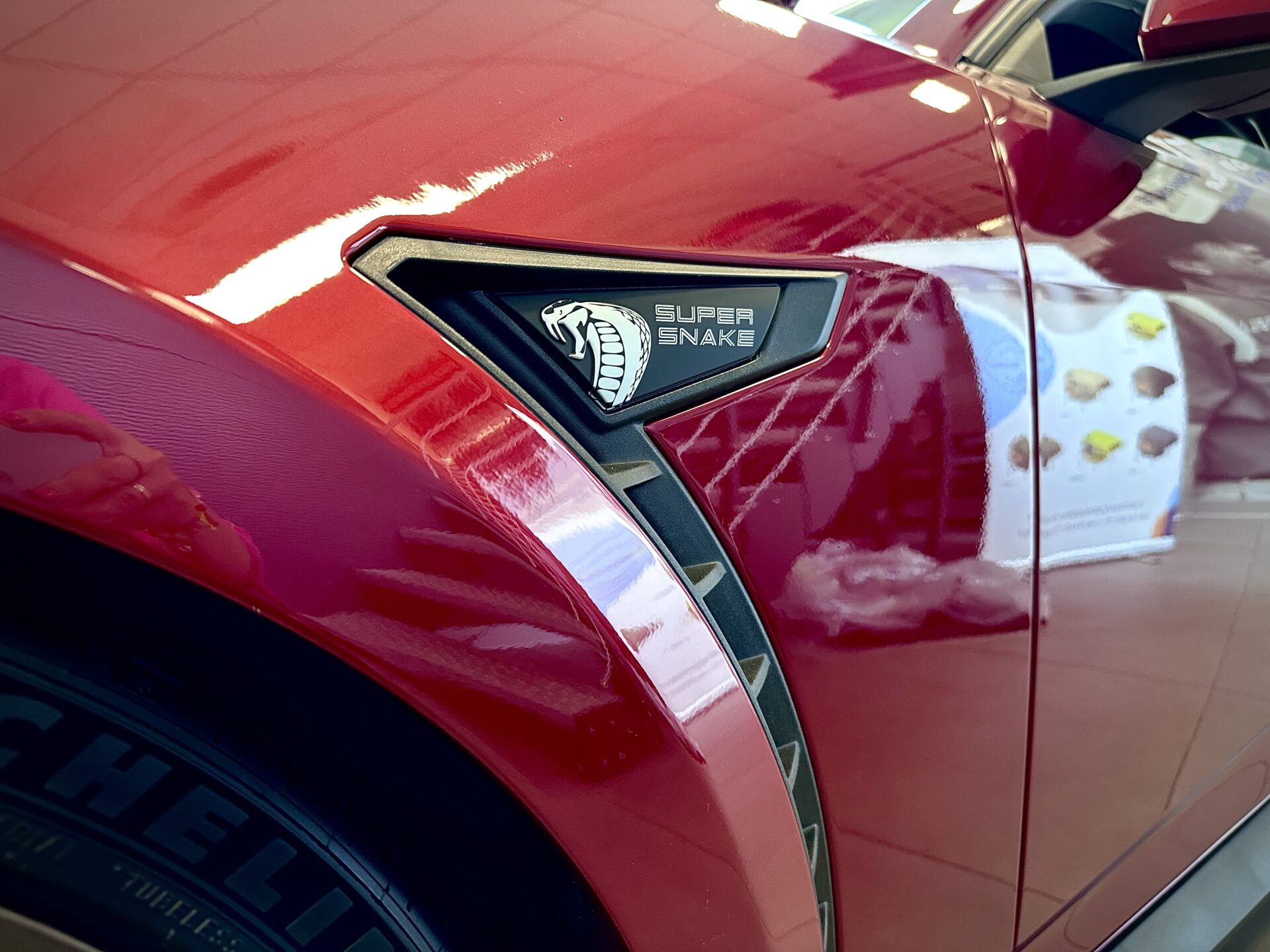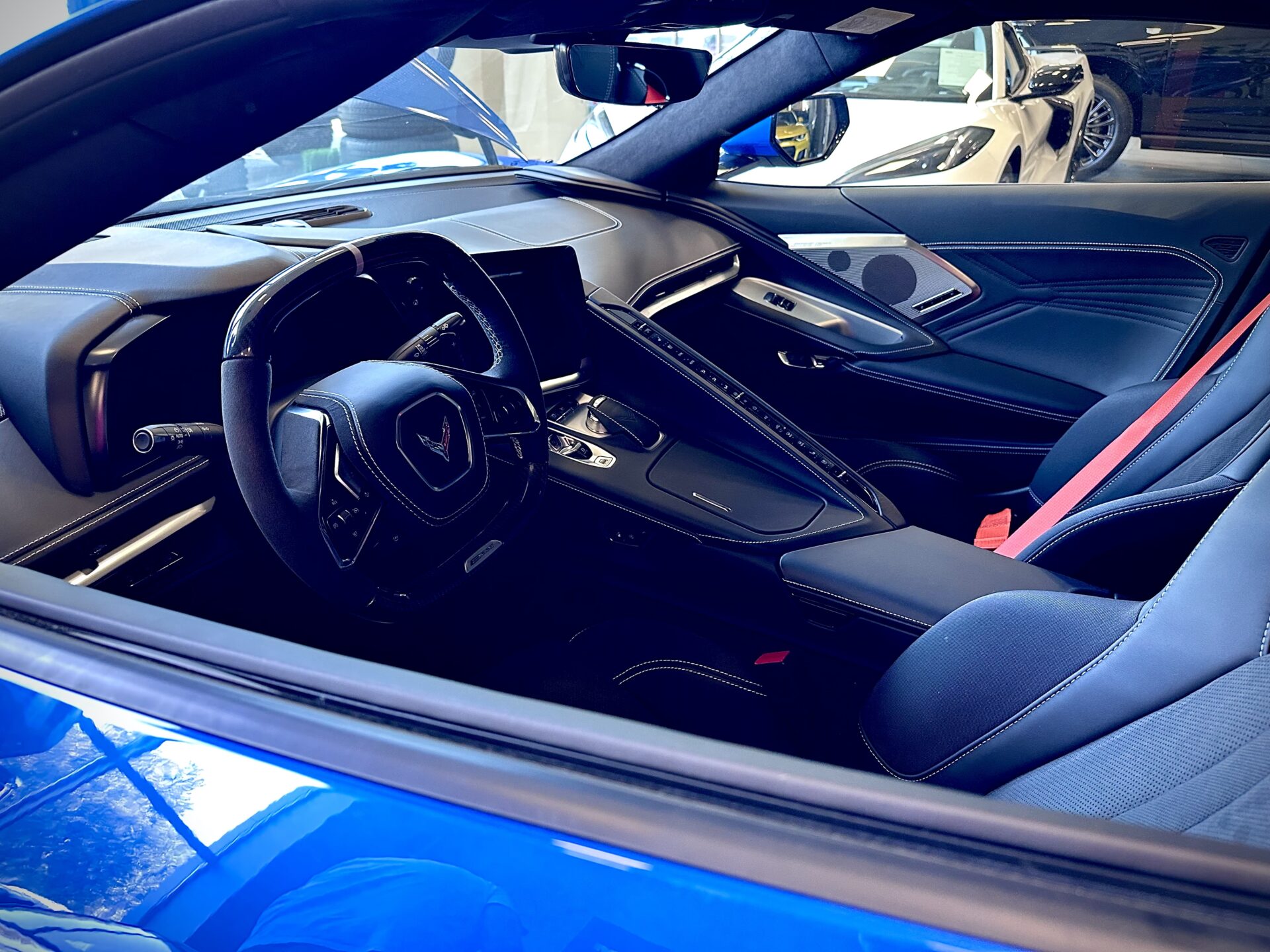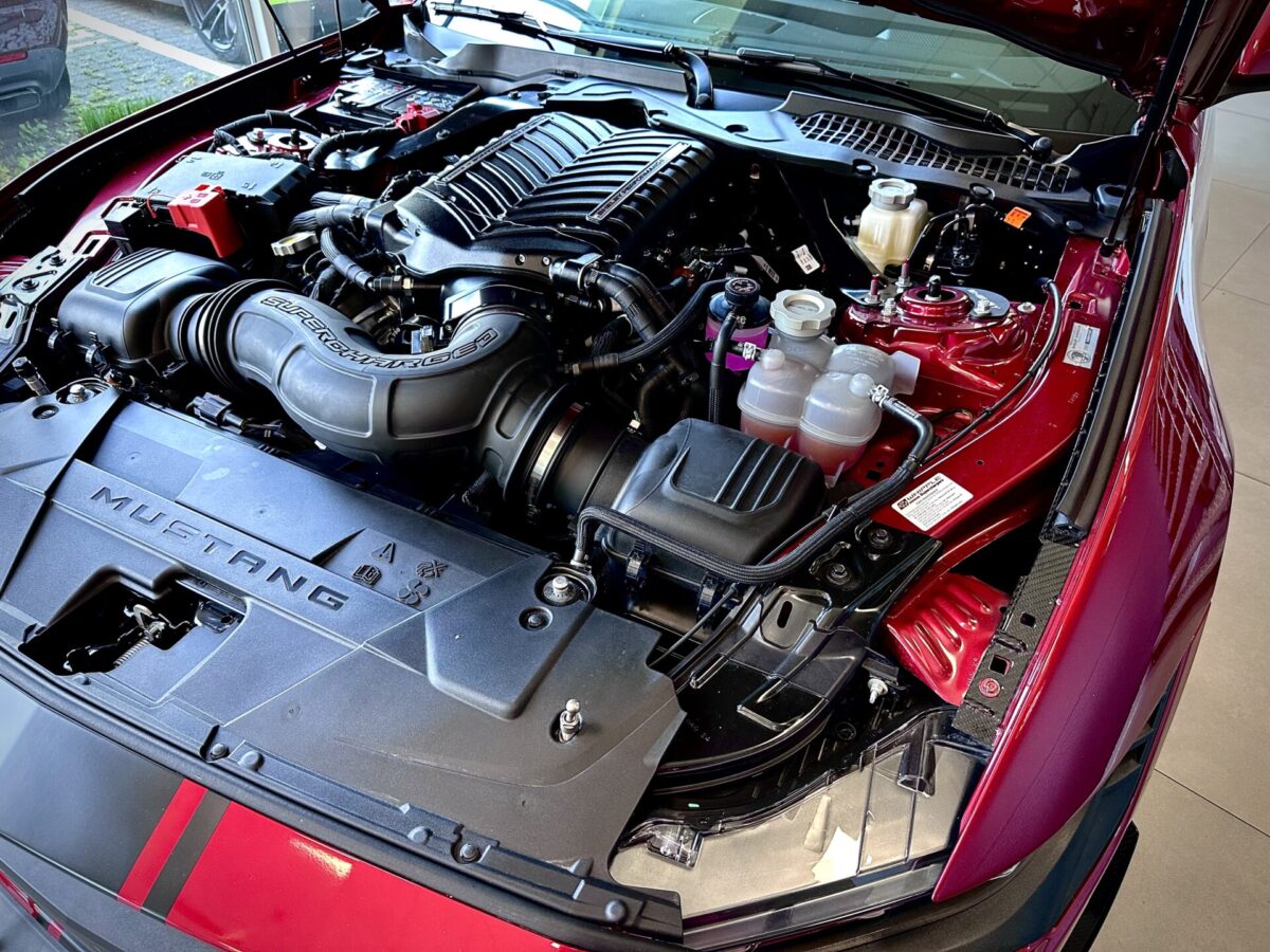 Środek Performance Automotive to niejako przeniesienie do domu Corvetty. Po przekroczeniu progu ukazało się nam 6 (słownie sześć) sztuk Chevroleta Corvetty C8, każda w innym kolorze, i różnych wydaniach. Za centralnie umieszczoną niebieską sztuką E-Ray stało nowiusieńkie złoto-żółte Camaro. Po lewej stronie salonu miejsce zostało przeznaczone dla królów. Czarny Cadillac Escalade ESV 2025 oraz Shelby Super Snake 2024 (S650). W Polsce ciężko spotkać te auta nawet na zlotach. A Tu? Stoi fabrycznie nowe Shelby za ponad bańkę…