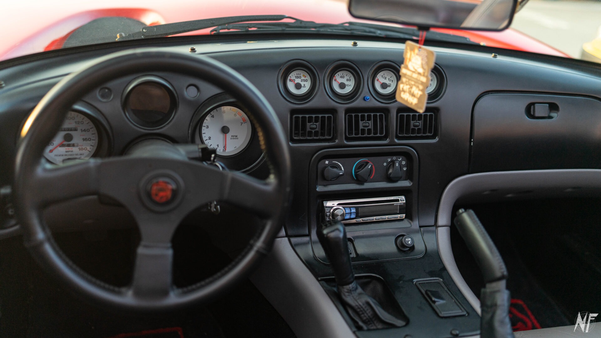Mnie Viper urzekł jednak swoim podstawowym gigantycznym plusem, nie dość, że byłem w stanie do niego wsiąść to jeszcze go poprowadzić. Jeśli ma się 2 metry wzrostu, to wybór w autach sportowych jest raczej drobny. Kto widział moje próby wsiadania za kółko Corvett, ten wie jak było to komiczne i nierealne. Żmija ma natomiast tak wiele miejsca i jest zbudowana w taki sposób, że prowadzenie auta nie tyle było realne, co niesamowicie wygodne. Długa podłoga, długie siedzenie i ustawieniem pedałów wręcz jak zbudowane na miarę. Oczywiście coś, co dla mnie było plusem dla kogoś musiało być minusem i to się tyczy osób niskich, bo realne było, że ta nie dosięgnie gdzie trzeba.